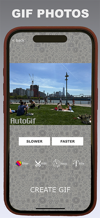 Record instant looping GIF animations with a single touch! Create instant looping GIFs from your Photos in seconds! Send them everywhere! Simple, Quick, and Super Easy!