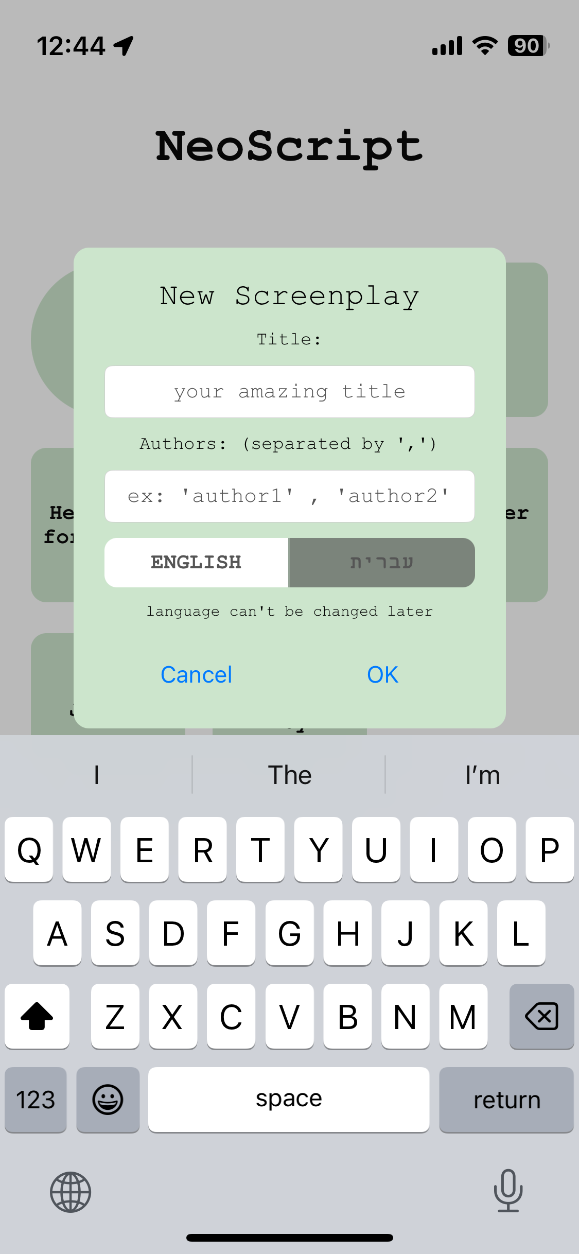 NeoScript is dual language movie script writing app, always write in format never have to save.